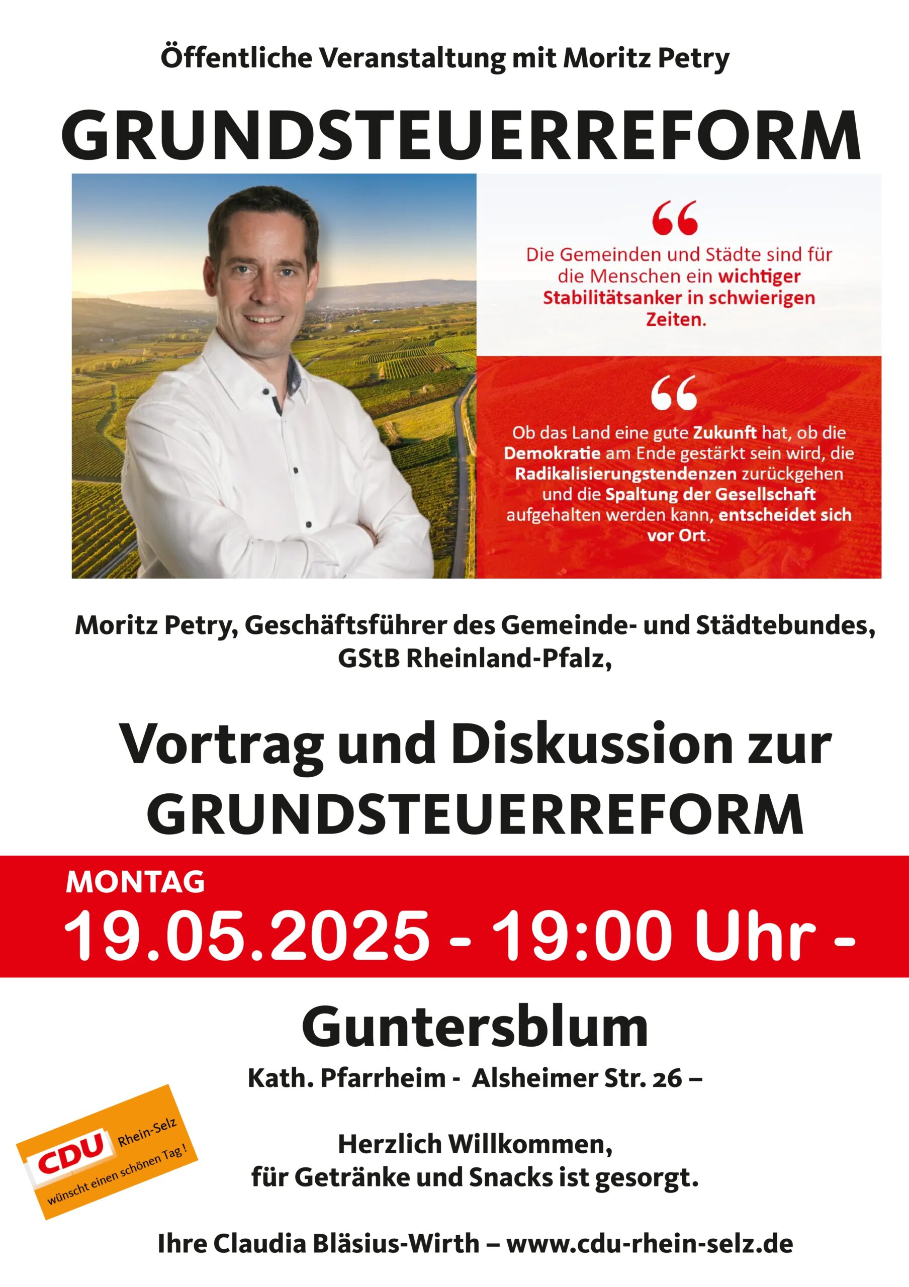 Veranstaltung Grundsteuerreform mit Moritz Petry 19.05.2025 um 19 Uhr